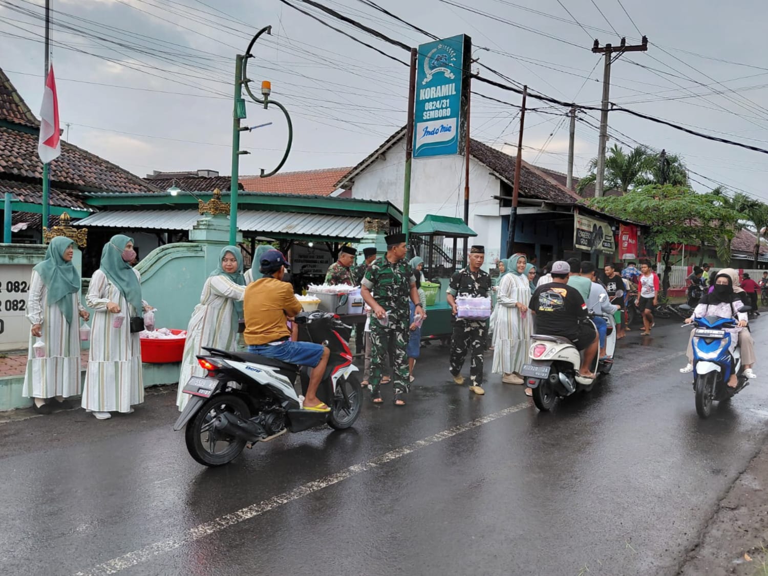 Kegiatan sore hari ini seluruh anggota Koramil 0824/31 Semboro beserta ibu Persit dengan penuh semangat kebersamaan di bulan suci Ramadhan membagikan ratusan paket takjil kepada pengendara roda dua maupun, roda empat, serta warga masyarkat yang melintas menjelang waktu berbuka puasa.
