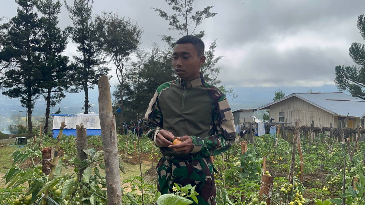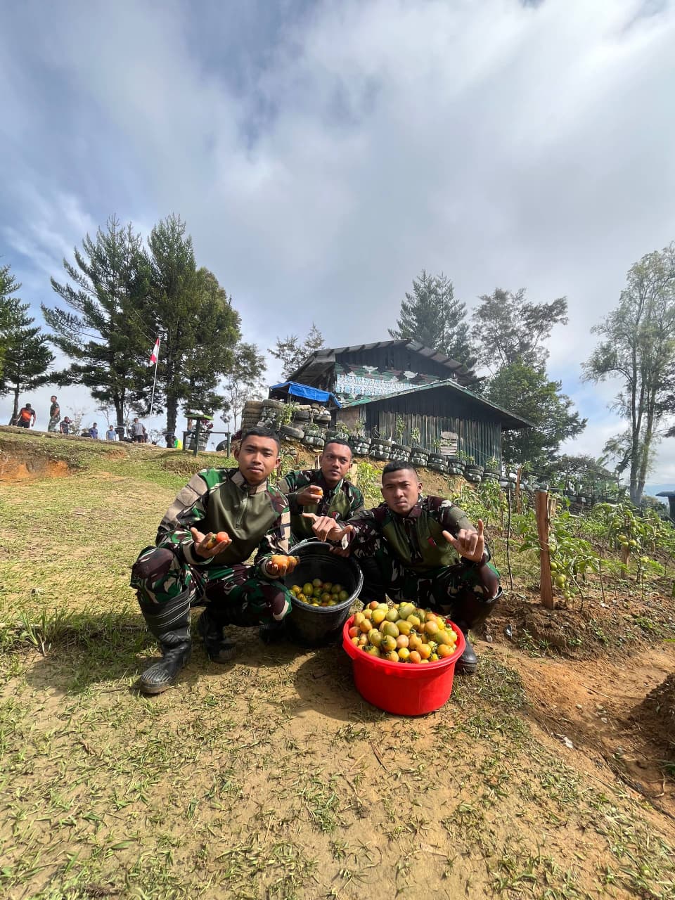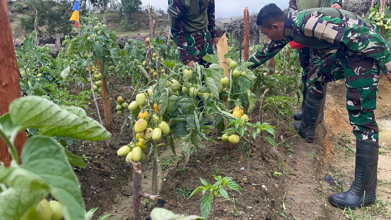 Berbekal pengetahuan pembekalan tentang pertanian sebelum berangkat tugas, personel Satgas dengan cekatan memanfaatkan lahan kosong di sekitar pos dengan menanam cabe untuk membantu kebutuhan pangan prajurit dan juga warga sekitar pos.