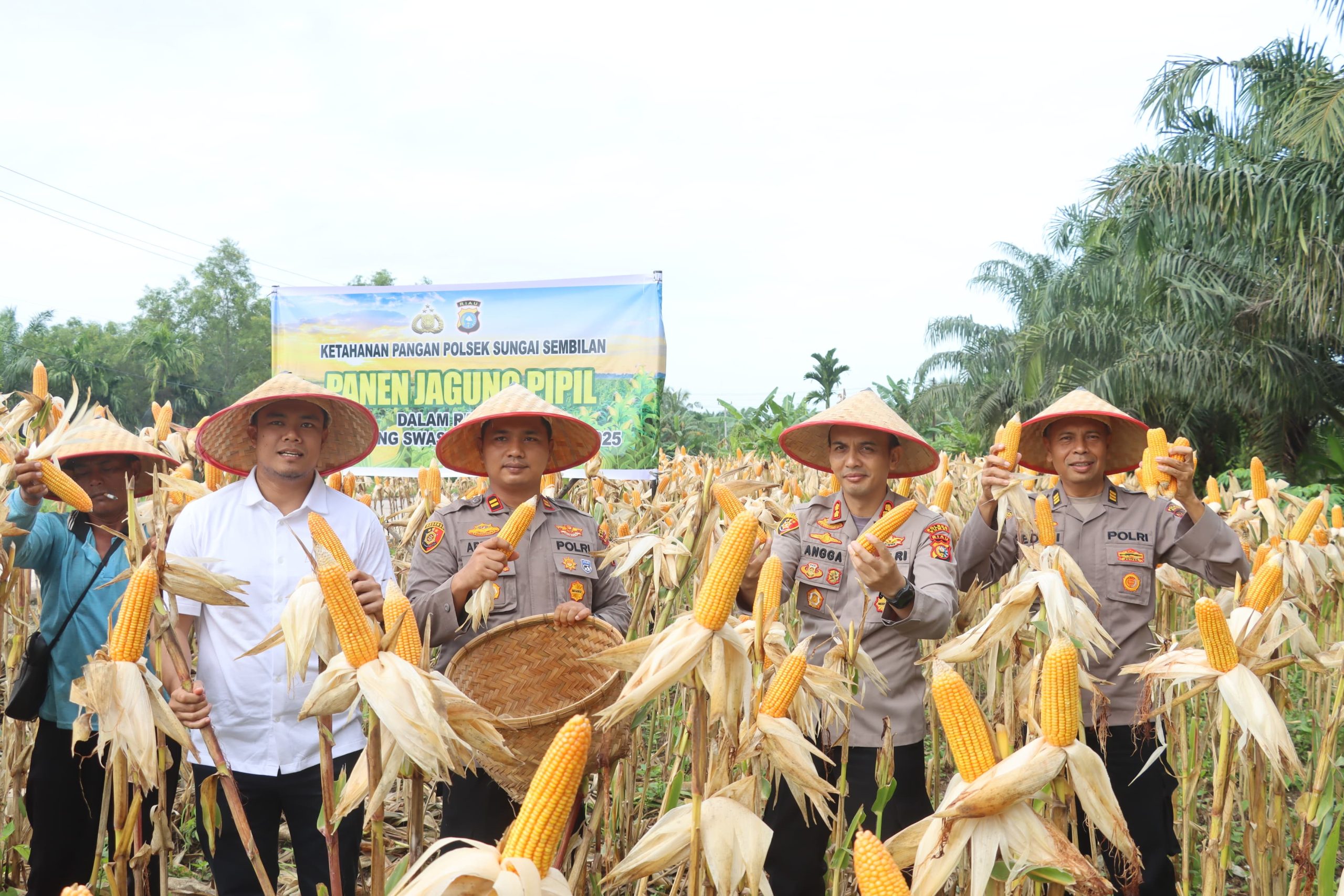 Dumai,http://radarreclasseering.com –Polres Dumai bersama Polsek Sungai Sembilan sukses menggelar kegiatan panen jagung pipil di Jalan Sungai Paul, RT 001, Kelurahan Lubuk Gaung, Kecamatan Sungai Sembilan, Kota Dumai. Kegiatan ini merupakan bagian dari program Gugus Tugas Polri dalam mendukung ketahanan pangan dan swasembada pangan tahun 2025.