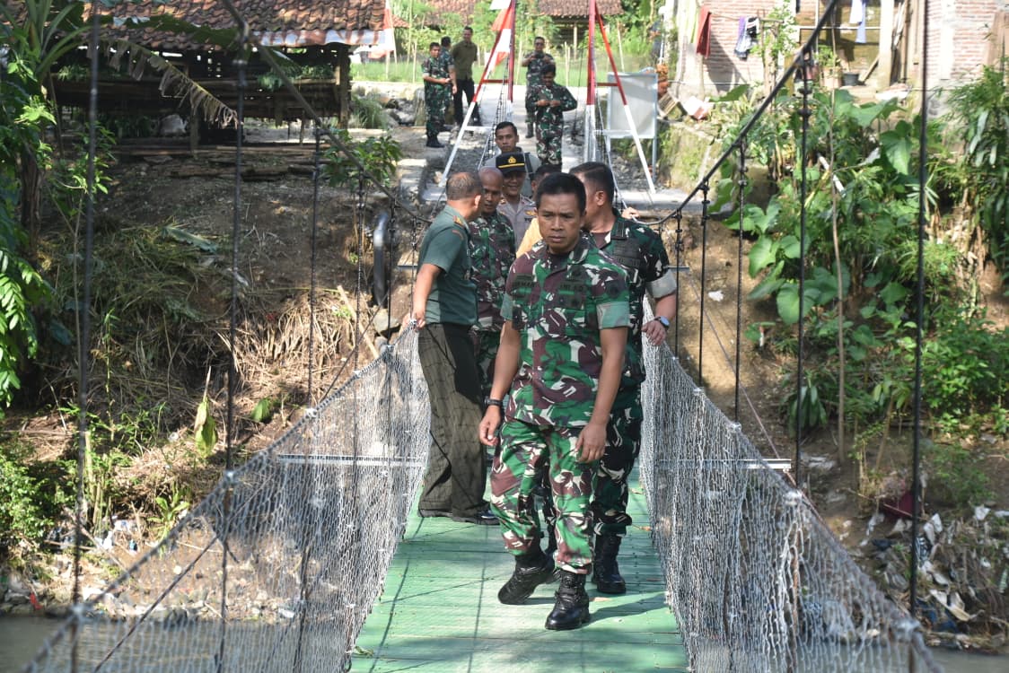 Jembatan sepanjang 50 meter dengan lebar 1,20 meter itu dicek langsung kekuatan dan fungsinya oleh jajaran pejabat Kodam IV/Dip. memastikan benar-benar aman dan bermanfaat bagi rakyat.