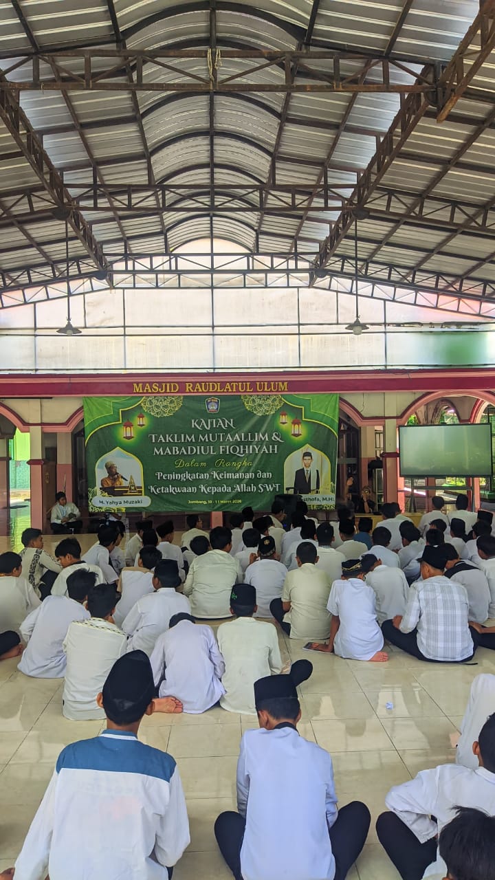 Jombang, Radarreclasseeing.com – Kegiatan kajian kitab klasik kembali digiatkan sebagai upaya memperkuat pembentukan karakter dan pemahaman keagamaan generasi muda. Kegiatan yang diikuti siswa SMPN 1 Jombang ini menghadirkan pengkajian kitab Ta’lim Muta’alim dan Mabadiul Fiqhiyah sebagai bagian dari pembinaan spiritual dan akhlak peserta didik.