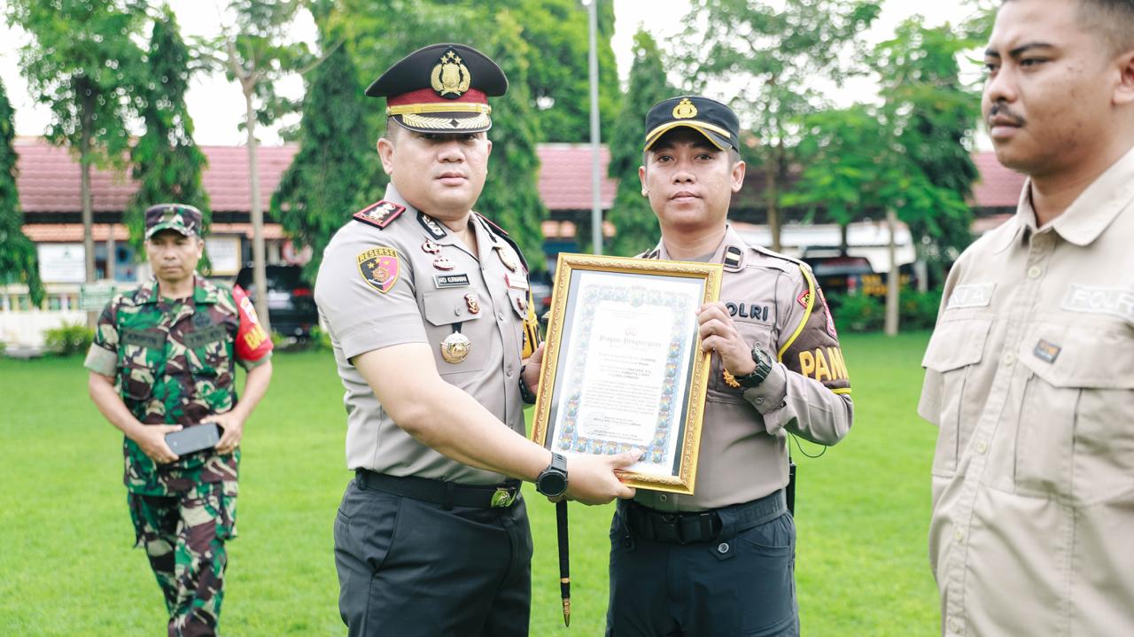 *Penghargaan ini kami berikan sebagai bentuk apresiasi atas dedikasi, loyalitas, serta respon cepat rekan-rekan dalam memberikan pelayanan kepada masyarakat. Saya berharap prestasi ini dapat terus dipertahankan dan ditingkatkan, dengan disertai inovasi-inovasi positif yang bermanfaat bagi masyarakat,” ujar AKBP Ardi Kurniawan.