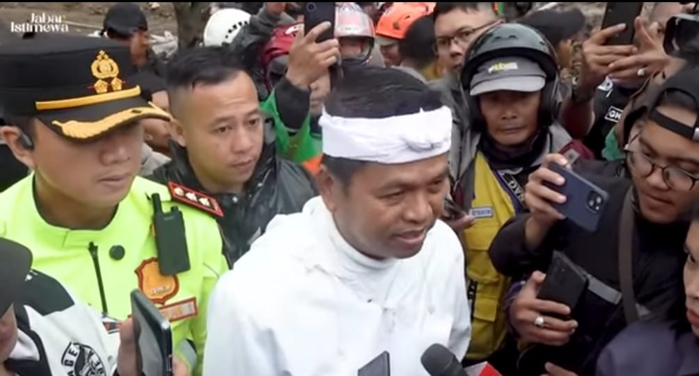 Di tengah proses pencarian dan evakuasi, Gubernur Jawa Barat Dedi Mulyadi tiba di lokasi bencana.
