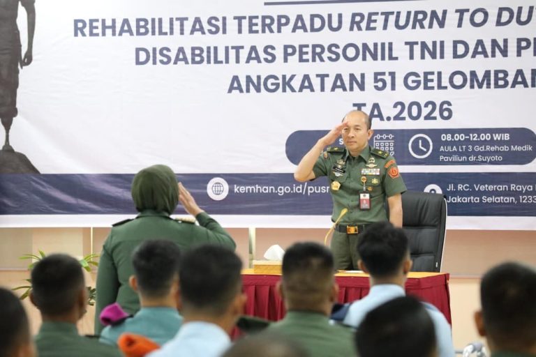 Jakarta,http://radarreclasseering.com — Kepala RSPPN Soedirman Pusrehabkeshan Kemhan Brigjen TNI dr. Sunaryo Kusumo membuka kegiatan Rehablitasi Terpadu Return to Duty (RTD) Penyandang Disablitas Personel TNI dan PNS Kemhan Angkatan 51 Gelombang I TA. 2026 di Pusat Rehabilitasi Kemhan Jakarta Selasa, (20/1/2026)