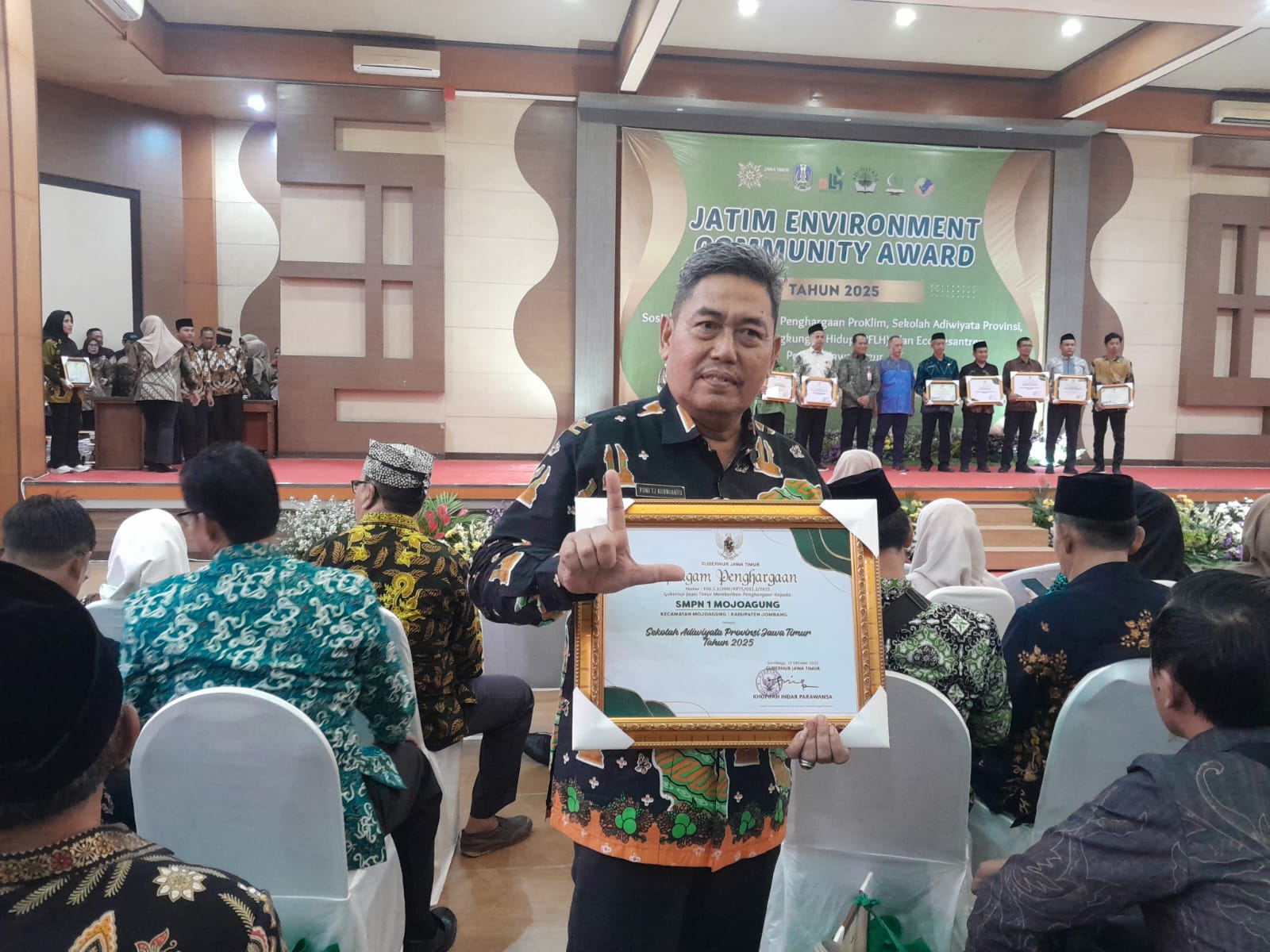Penghargaan tersebut diberikan sebagai apresiasi atas konsistensi SMP Negeri 1 Mojoagung dalam menjalankan program Adiwiyata sepanjang tahun 2025. Meski berada di lingkungan dengan ruang terbatas, sekolah mampu berinovasi dengan mengoptimalkan setiap sudut area melalui taman vertikal, tanaman dalam pot, serta sistem hidroponik yang tertata rapi dan fungsional.