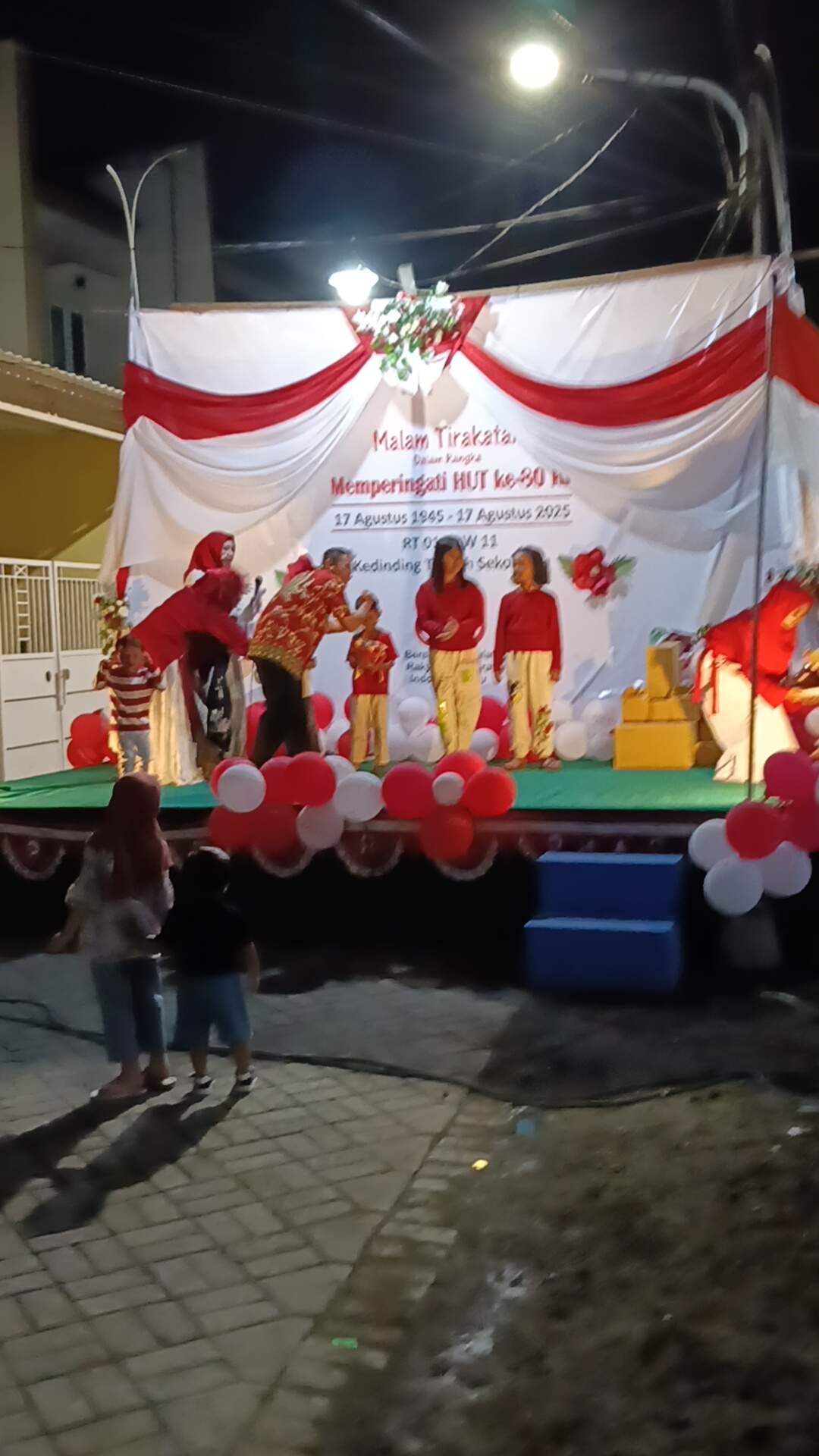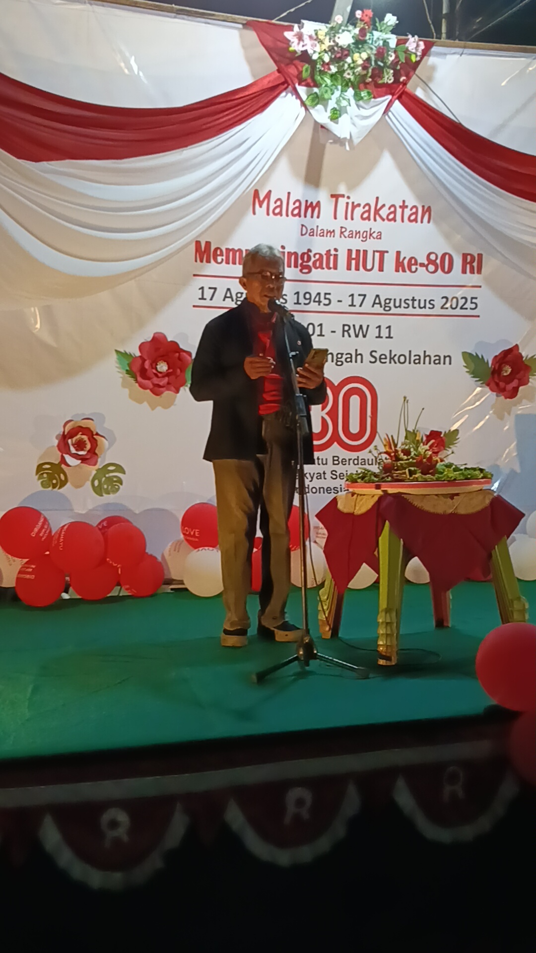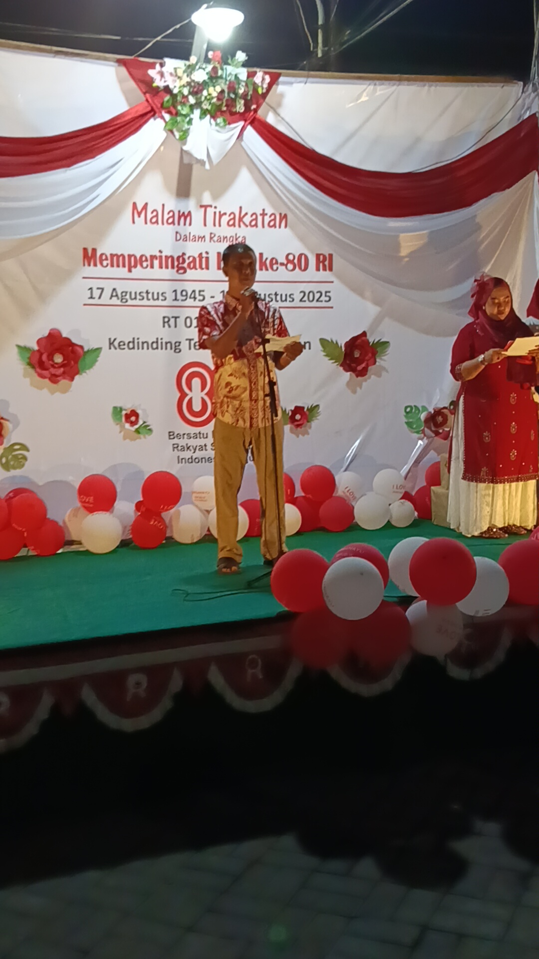 Menginjak acara selanjutnya, sambutan Bapak Dedy Kurniawan selaku Ketua Panitia di acara Malam Tirakatan Dalam Rangka Memperingati HUT Ke-80 Kemerdekaan Republik Indonesia. Dalam sambutannya, Ketua Panitia mengucapkan Beribu Terima kasih atas partisipasi serta support seluruh Warga RT.001 RW.011 Kelurahan Tanah Kali Kedinding. Tak lupa atas pesan dari Ketua RT.001, Ketua Panitia mendoakan beberapa Warga dan juga Sesepuh Kampung Kedinding Tengah Sekolahan yang saat ini diberikan cobaan sakit, semoga beliau-beliau yang kini sakit diberikan kesabaran dan kesembuhan oleh Allah SWT.