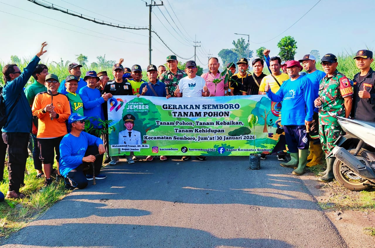 Jember,http://radarreclasseering.com –Muspika Semboro Jumat pagi pukul 06.30 Wib, melaksanakan kegiatan dalam rangka penanaman bibit pohon di sepanjang ruas jalan khususnya yang ada di wilayah Kecamatan Semboro. Kegiatan tersebut diikuti seluruh Kepala Desa dan perangkat desa se-Kecamatan Semboro (30/01/2026).