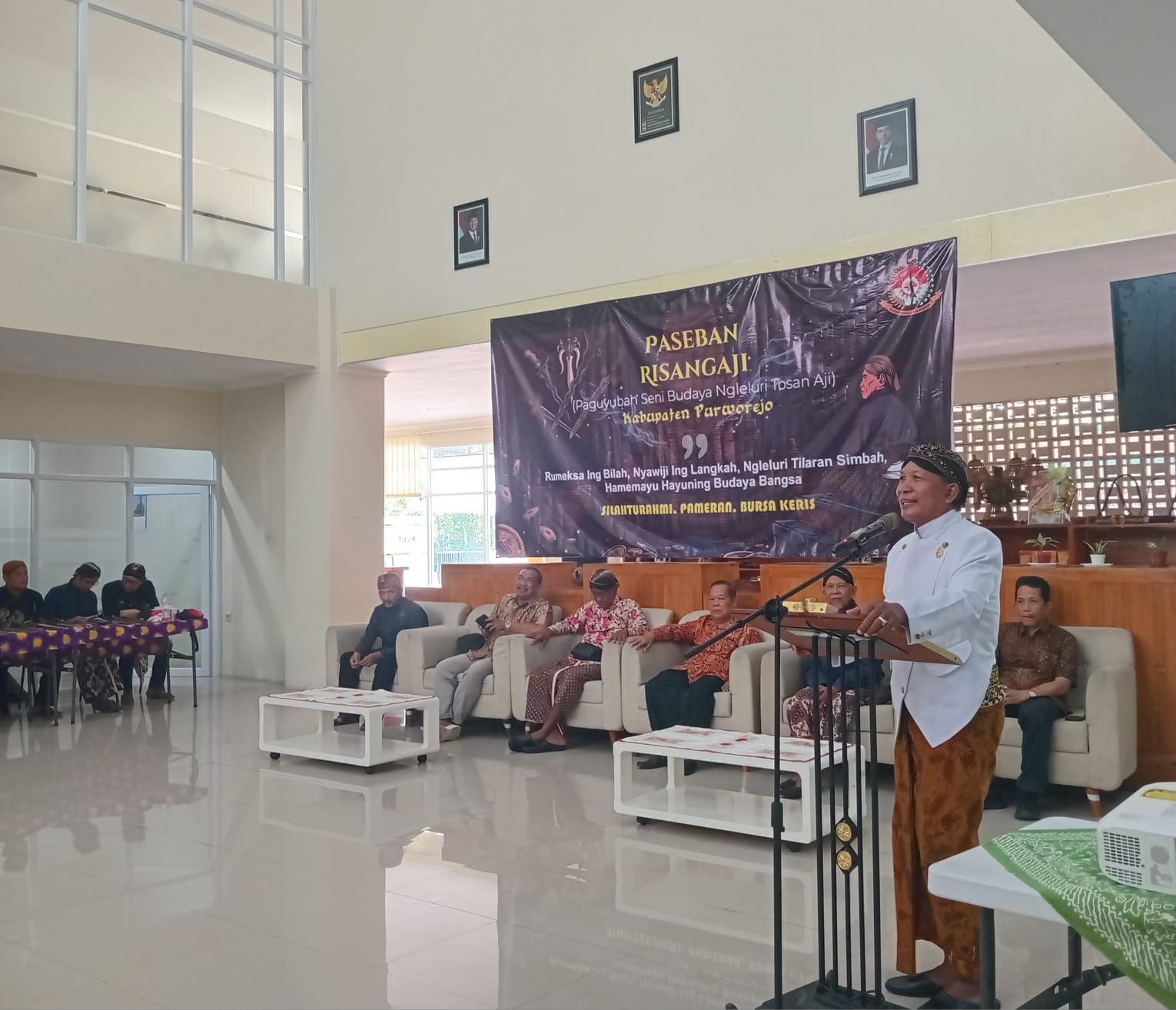 Hadir pula memberikan sambutan, Kepala Dinas Pendidikan dan Kebudayaan Kabupaten Purworejo, Bapak Yudi Agung. Dalam arahannya, ia mengapresiasi peran Paguyuban Paseban Risang Aji yang telah berkontribusi aktif dalam memajukan dan melestarikan budaya daerah, sejalan dengan visi misi pemerintah daerah.