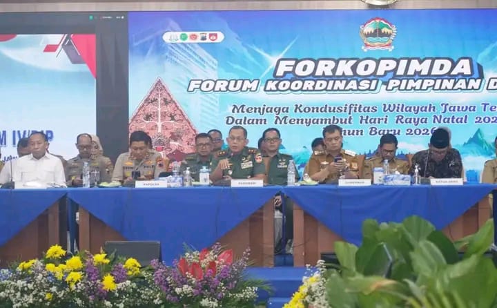 Jateng, Semarang,http://radarreclasseering.com — Pangdam IV/Diponegoro Mayjen TNI Achiruddin, S.E., M.Han., menghadiri Rapat Forkopimda Provinsi Jawa Tengah dengan tema “Menjaga Kondusifitas Wilayah Jawa Tengah dalam Rangka Menyambut Hari Raya Natal 2025 dan Tahun Baru 2026 yang digelar di Gedung Gradhika Bhakti Praja, Semarang Senin, (8/12/2025)