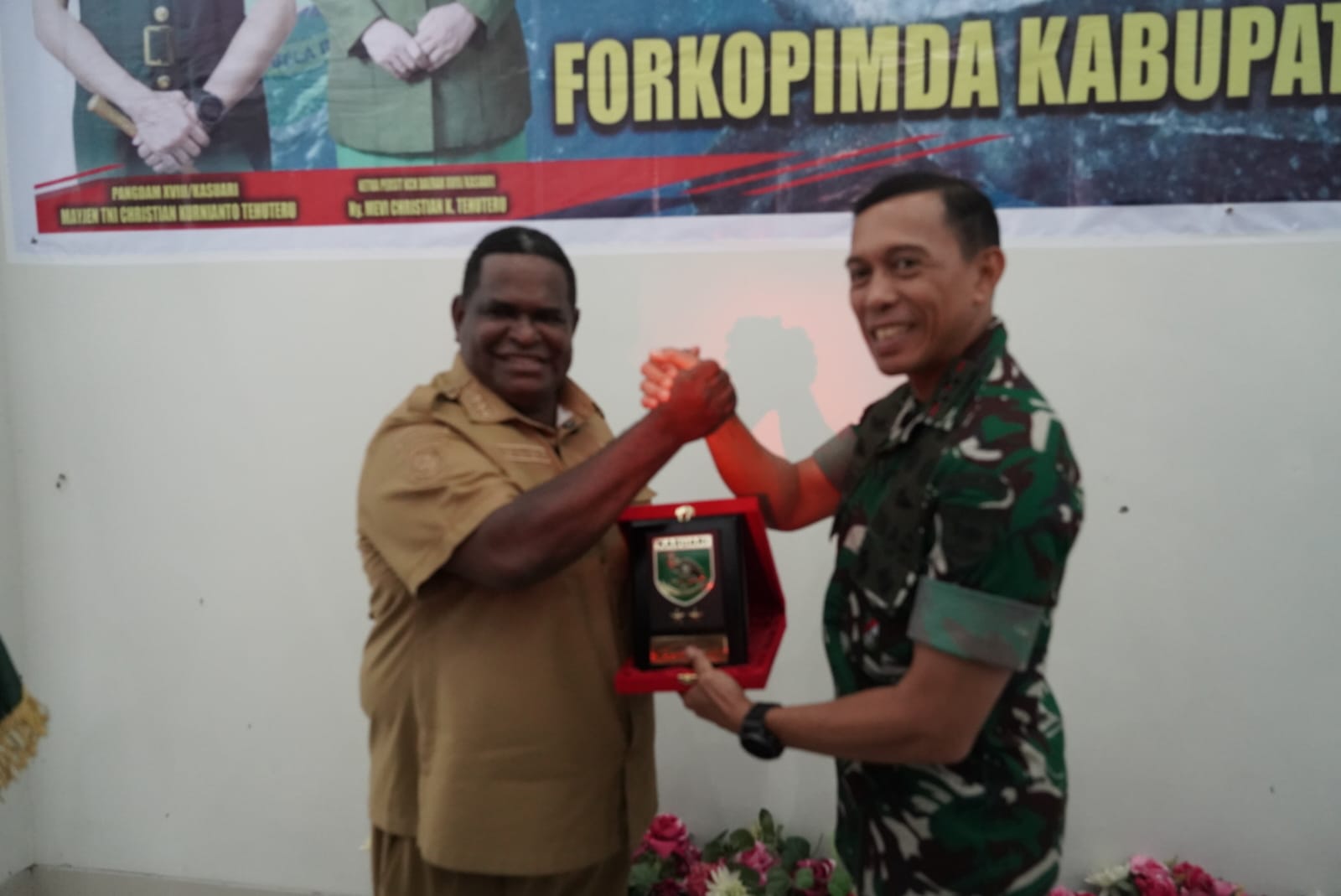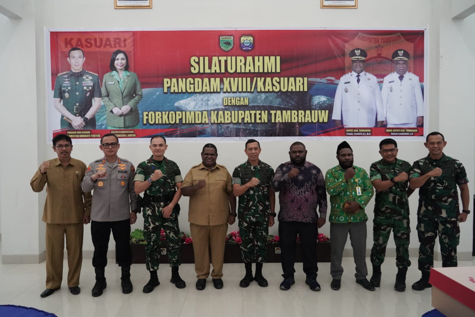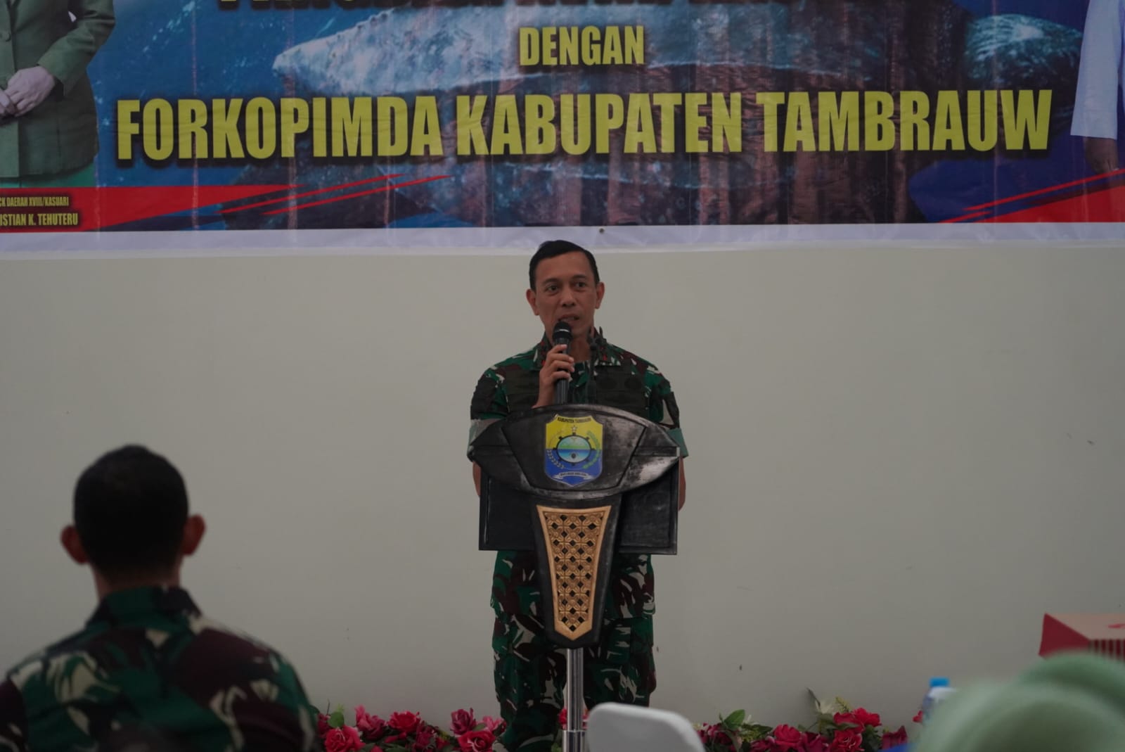 Sementara itu, Bupati Tambrauw, Bapak Yeskiel Yesnath, S.E., M.Si., menyampaikan rasa bangga dan terima kasih atas kunjungan Pangdam beserta jajaran.