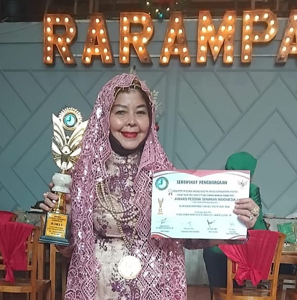 “Menambahkan., Dengan terselenggaranya Lomba Fashion Show Kebaya Nusantara, dalam rangka memperingati (Hari Ibu) dan Penutup Akhir Tahun 2025. Puji syukur Alhamdulillah saya bisa menjuarai nomor 1 (Satu), dengan mendapat penghargaan Piagam Piala / Sertifikat “Award Pesona Seniman Indonesia”.