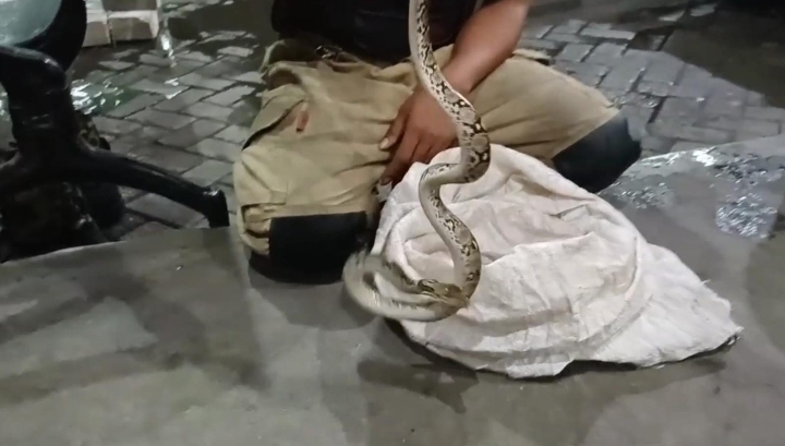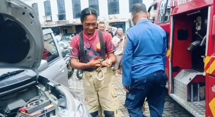 Diduga ular masuk ke dalam mesin mobil untuk mencari tempat hangat saat musim hujan. Setelah diamankan di pos damkar, ular akan dilepaskan kembali ke habitat alaminya. *(Rhy)