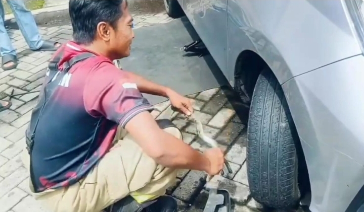 Petugas tiba di lokasi setelah menerima laporan dari warga yang menemukan keberadaan ular. Setelah melakukan pencarian di area mesin mobil, mereka menghadapi kesulitan karena posisi ular yang tersembunyi rapat. Bersama pemilik kendaraan, petugas melepas bagian penutup roda depan untuk mengakses lokasi bersembunyi ular. Setelah sekitar 5 menit proses evakuasi, ular piton yang masih berukuran kecil berhasil ditangkap dan diamankan.