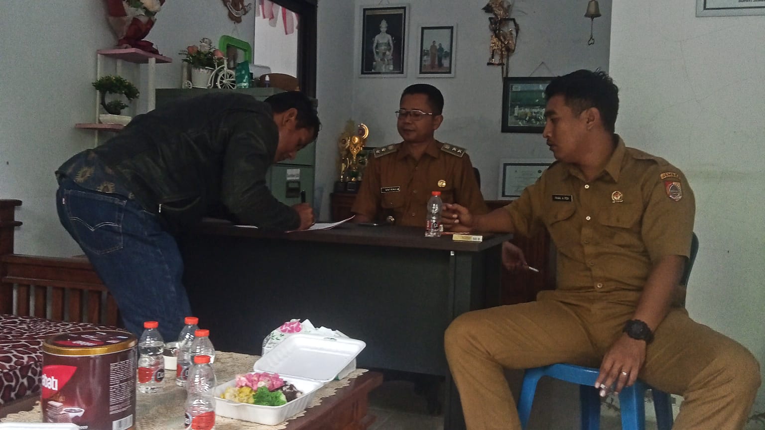 Kades Semboro Antoni, saat di konfirmasi di ruangannya belum sempat memberikan komentar karena masih belum selesai pertemuan mediasi berikutnya.