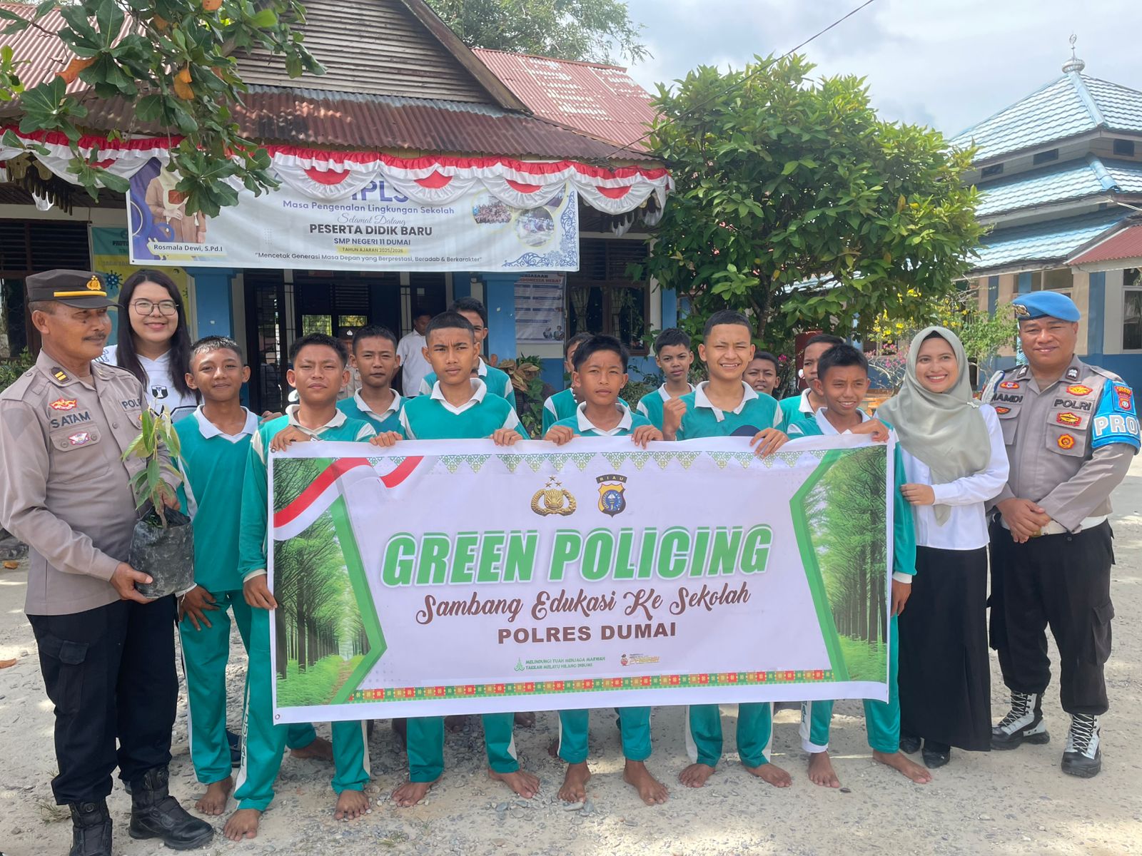 Dengan mengusung tema “Polri Peduli Lingkungan dan Mendukung Gerakan Nasional Penghijauan”, anggota Polsek Bukit Kapur bersama siswa-siswi dan guru SMPN 11 bahu-membahu menanam 22 pohon berbagai jenis, mulai dari mahoni hingga durian.