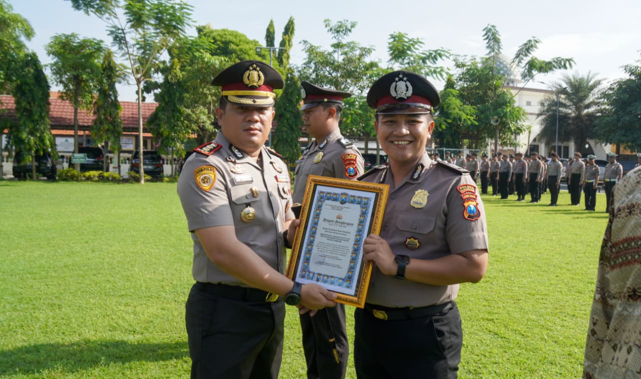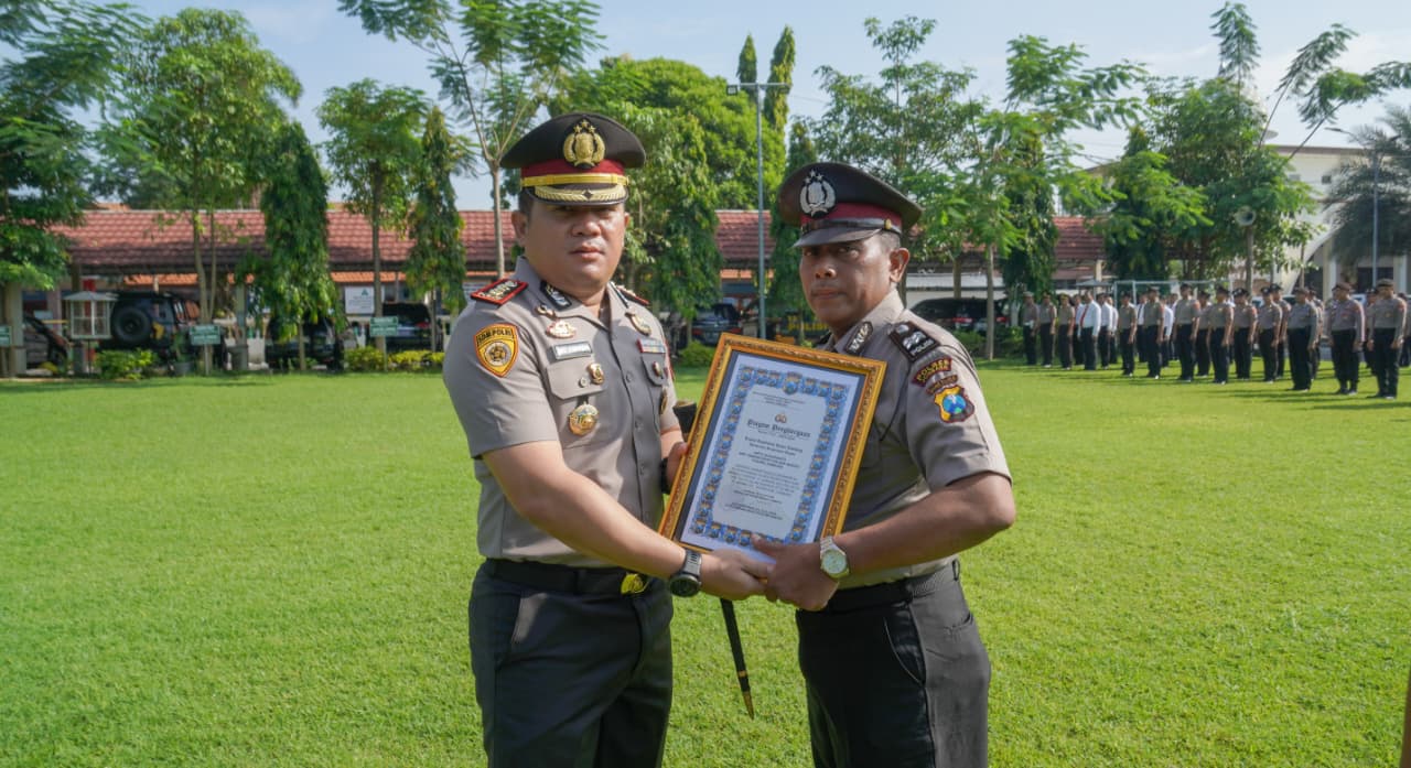 Penyerahan penghargaan dilakukan langsung oleh Kapolres Jombang, AKBP Ardi Kurniawan, S.H., S.I.K., CPHR, dalam upacara apel di lapangan Mapolres Jombang pada Senin (19/1/2026). Penyerahan penghargaan disaksikan para PJU dan Polsek jajaran.