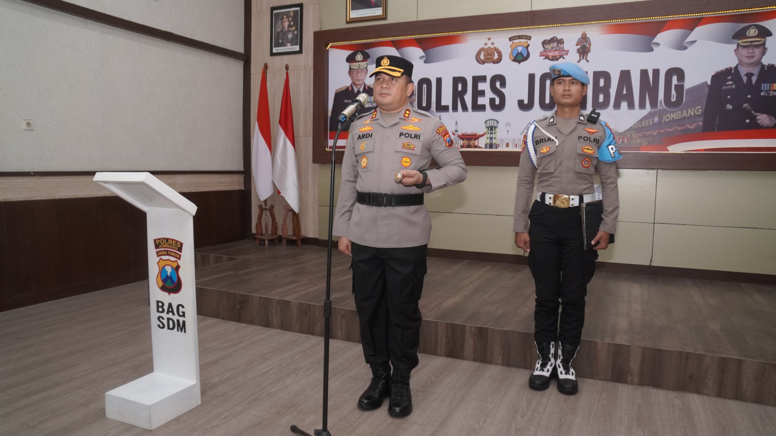 “Kami atas nama pribadi dan kesatuan mengucapkan terima kasih serta penghargaan yang setinggi-tingginya kepada Kompol Christian Bagus Yulianto atas dedikasi dan loyalitasnya selama kurang lebih 1 tahun 2 bulan menjabat sebagai Wakapolres Jombang. Saudara telah memberikan warna yang sangat positif dalam pembinaan personel serta membangun keterpaduan dan keharmonisan kerja di lingkungan Polres Jombang,” ujar AKBP Ardi Kurniawan.