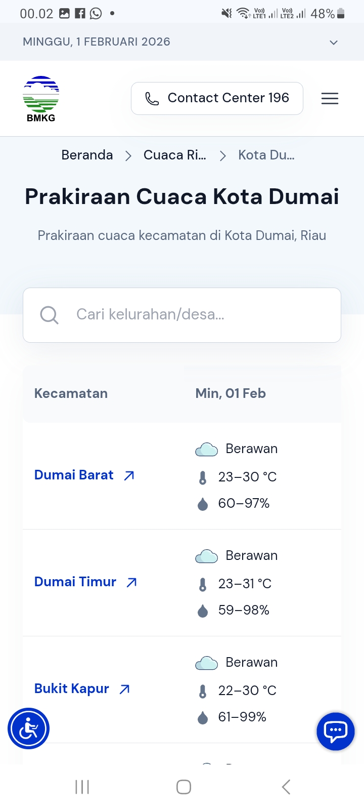 5. Melakukan monitoring secara berkala untuk mendapatkan informasi cuaca dan potensi karhutla melalui website:https://www.bmkg.go.id/cuaca/prakiraan-cuaca/14.72