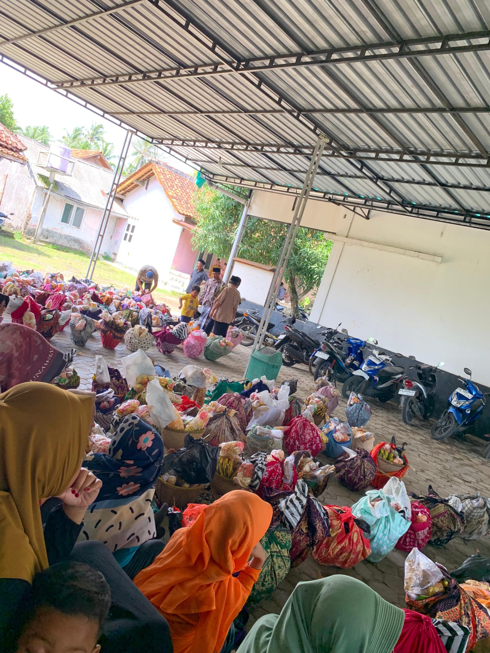 Semua hidangan yang dibawa warga dalam Bakul Anyaman Bambu, kemudian disajikan secara bersama-sama dan dido’akan, baru kemudian sebagian di sedekahkan, dan sebagian lebihnya di bawa pulang oleh masing-masing warga. Acara ini menciptakan suasana hangat dan penuh kebersamaan.