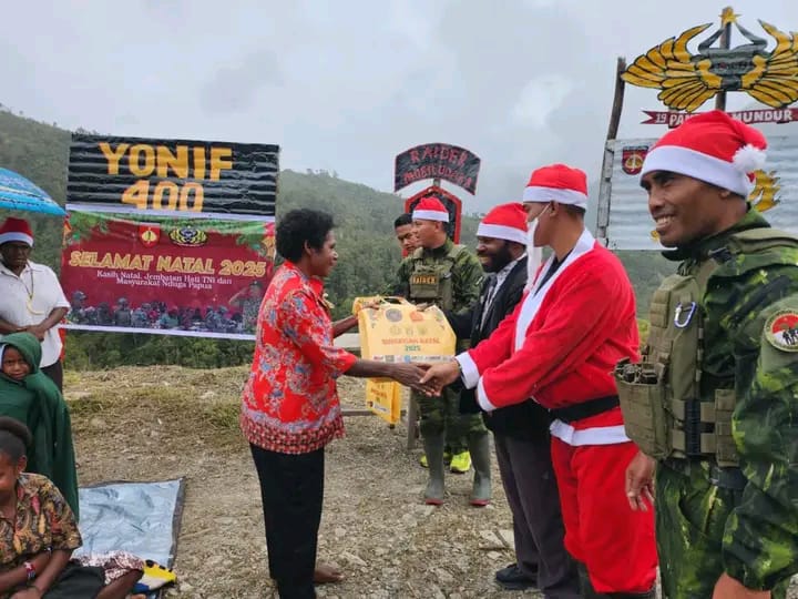 Nduga, papua pegunungan,http://radarreclasseering.com — Dalam rangka menyambut Hari Raya Natal 2025, Satgas Yonif 400/Banteng Raiders melaksanakan kegiatan pembagian bingkisan Natal kepada masyarakat Papua.