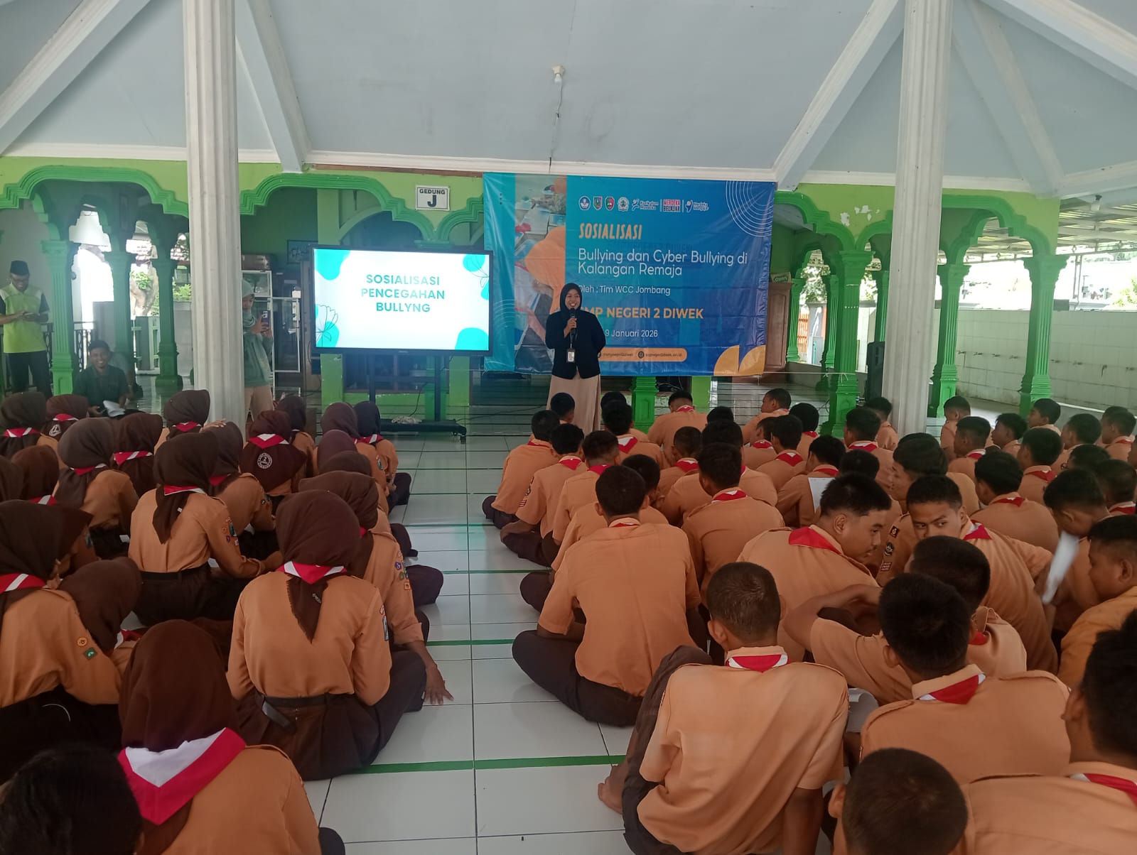 Sementara itu, siswa kelas 9 mengikuti kegiatan sosialisasi di masjid sekolah dengan narasumber dari Women’s Crisis Center (WCC) Jombang, sebuah lembaga pendampingan perempuan dan anak korban kekerasan. Materi yang disampaikan berfokus pada pencegahan bullying dan cyberbullying di kalangan remaja. Bersamaan dengan itu, ruang kelas dihias dengan berbagai tema edukatif seperti anti bullying, anti narkoba, serta penggunaan media sosial secara bijak. Dekorasi kelas tersebut dilombakan sebagai bagian dari rangkaian festival.