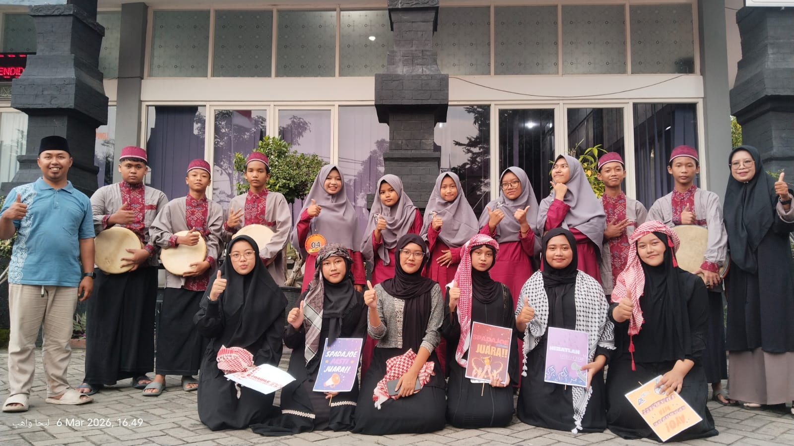 “Selamat. Berkat latihan keras dan kekompakan kalian, SMP Negeri 2 Jombang berhasil membawa pulang piala Juara III. Lantunan selawat kalian tidak hanya merdu, tetapi juga mengharumkan nama sekolah di tingkat kabupaten. Ini adalah kado Ramadhan yang indah bagi kita semua,” ujar Etik.