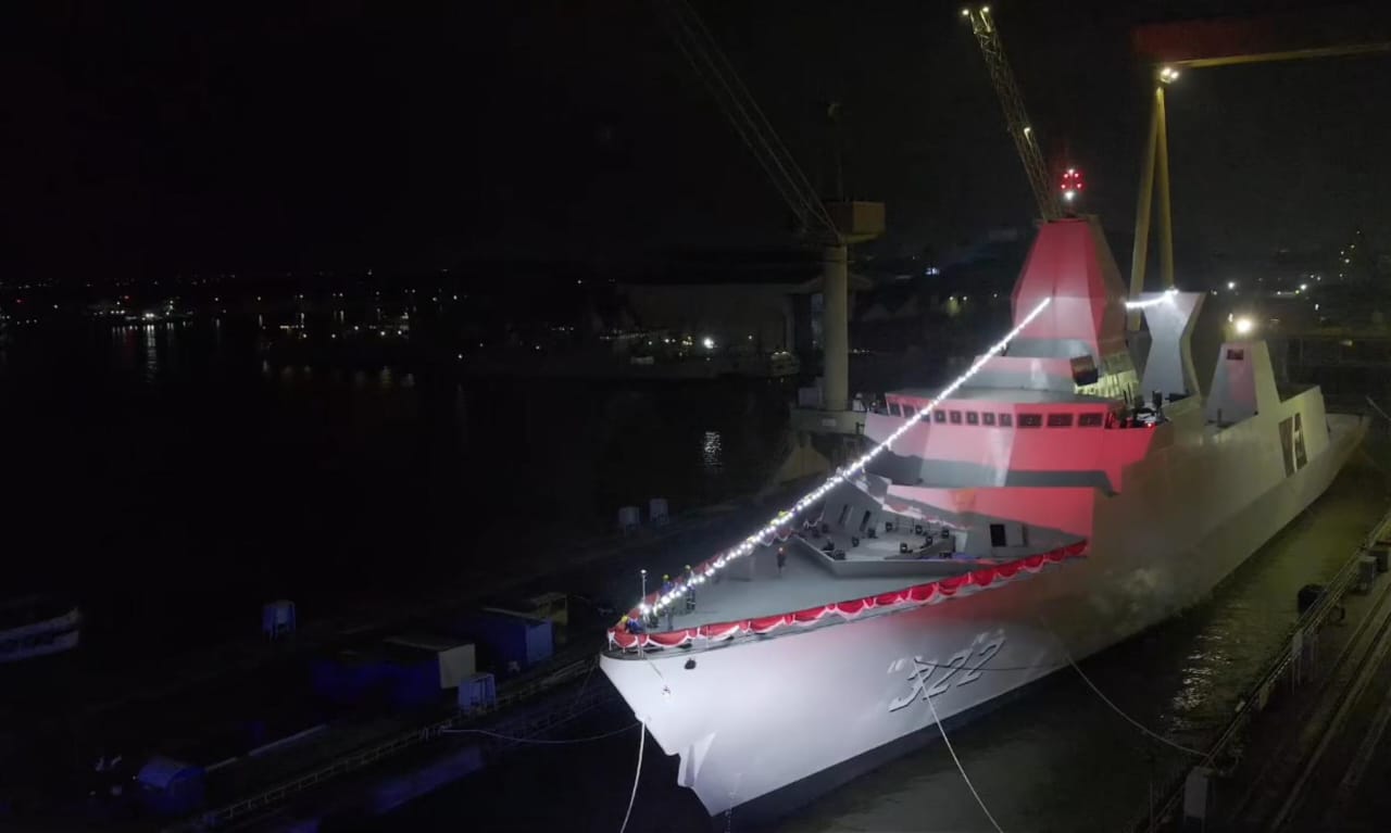 KRI Bala Putra Dewa 322, kapal frigate terbaru Angkatan Laut RI, resmi menjalani prosesi shipnaming dan launching yang dipimpin langsung oleh Wakil Menteri Pertahanan (Wamenhan) RI Marsekal TNI Purnawirawan Donny Ermawan Taufanto di Dermaga Semenanjung Barat, Divisi Kapal Niaga PT PAL Indonesia Surabaya, Kamis, (18/12/2025) malam.