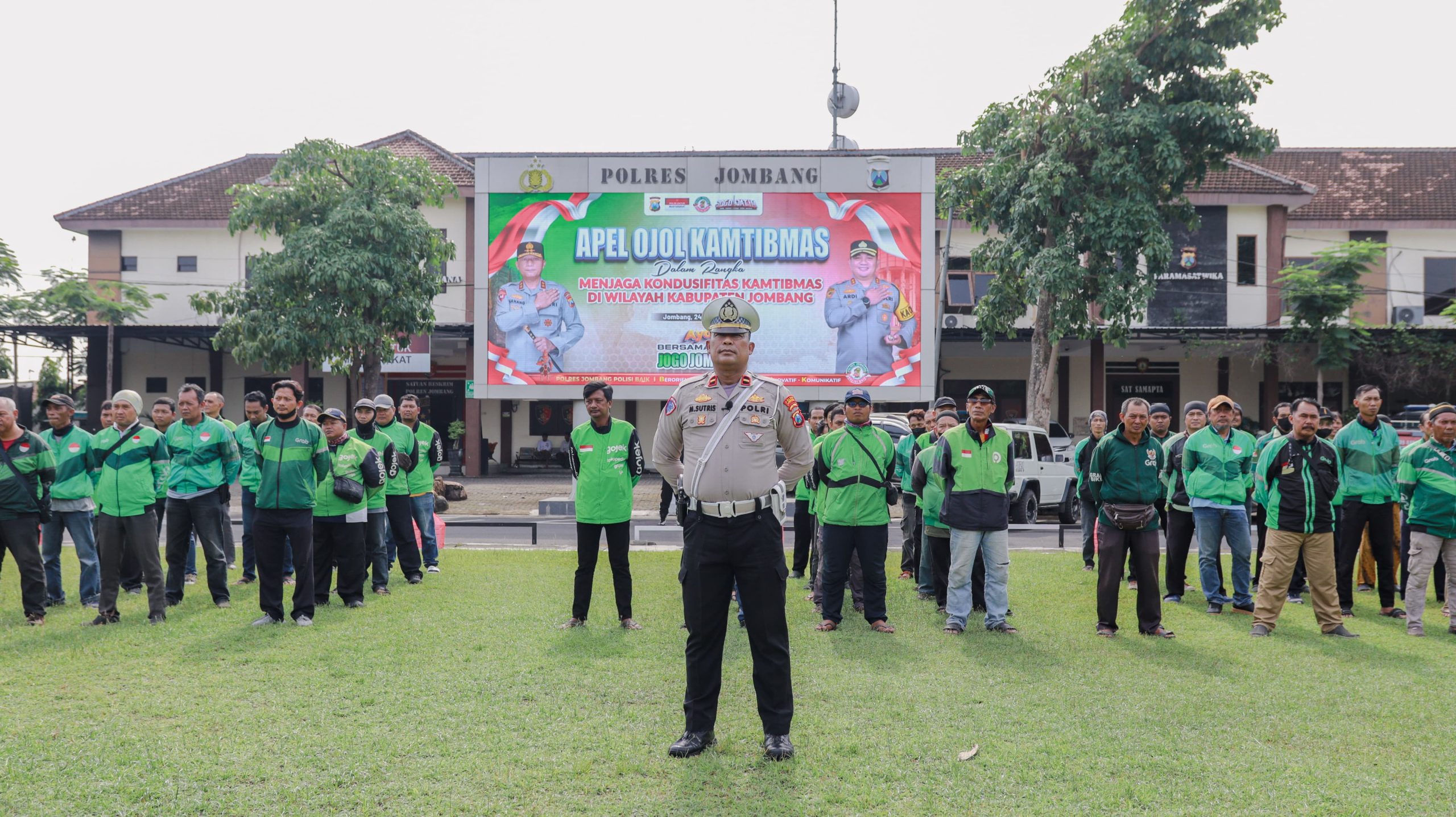 Jombang,http://radarreclasseering.com – Dalam rangka memperkuat sinergitas antara kepolisian dan masyarakat, khususnya komunitas ojek online (Ojol), Polres Jombang menggelar Apel Ojol Kamtibmas di Lapangan Polres Jombang, Jumat (24/10/2025) pagi. Kegiatan ini diihadiri Kadishub Jombang, Pejabat utama Polres Jombang, Kapolsek jajaran dan pengemudi ojek online Kabupaten Jombang.